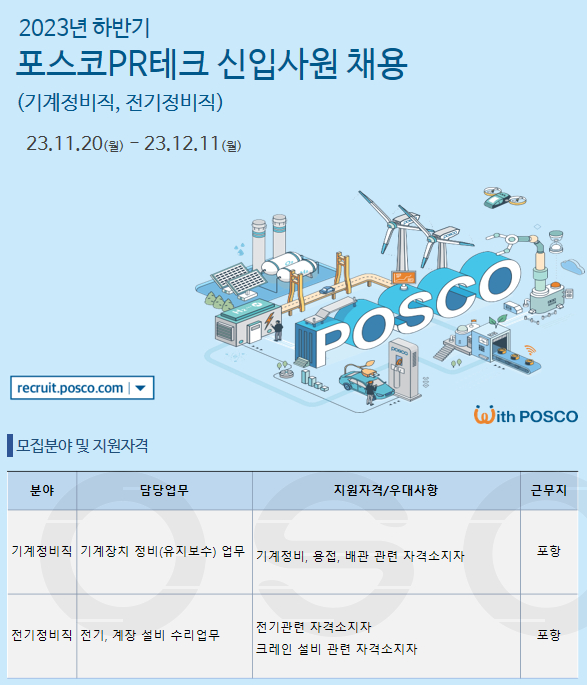 포스코PR테크 정비직 자소서, 채용공고 분석 및 합격 자기소개서 전략