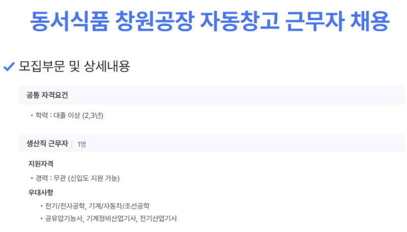 - – 생산 설비 관련 아르바이트 경험 강조