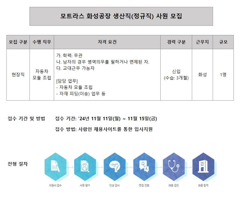 모트라스 생산직(조립) 직무는 어떤 일을 할까요?