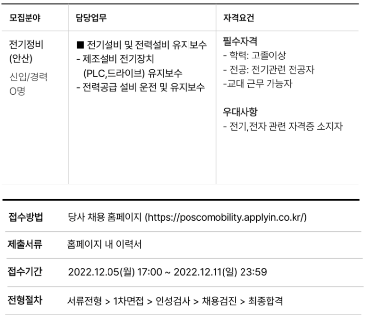 포스코모빌리티솔루션 자소서, 생산직 합격 자기소개서 첨삭+채용공고 분석