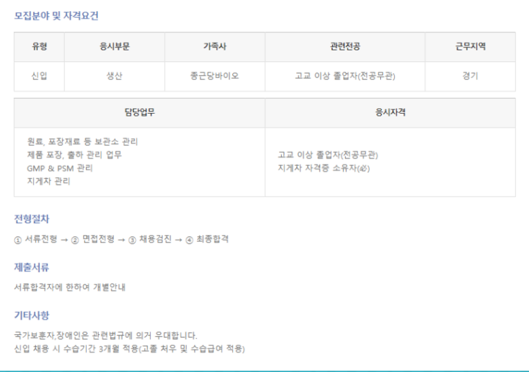 종근당바이오 자소서, 생산직 채용공고 분석! 합격 자기소개서 첨삭 및 예시